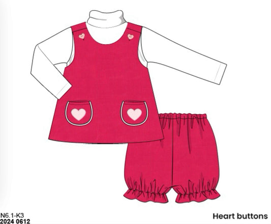 RTS: Corduroy Hearts- Girls 3pc Bubble Short Set (Without Monogram)