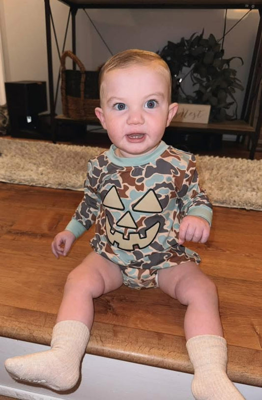 RTS: Camo Pumpkin- Boys Camo Long Sleeve Knit Bubble