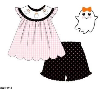 RTS: Gingham Ghost Re-Run- Girls Smocked Short Set