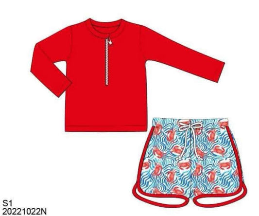 RTS: Crab Swim- Boys 2pc Rash Guard Brief Swim Set
