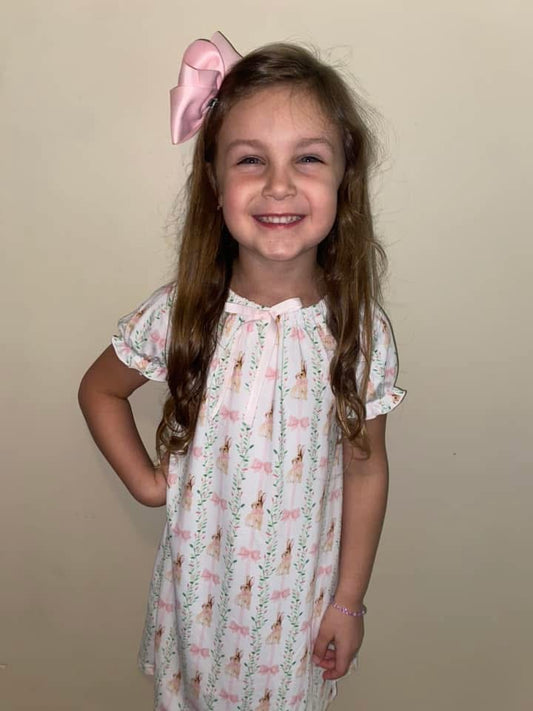 RTS: Easter Lounge- Bunny Grove Girls Knit GownVendor:Busy Bee Smocks!Regular price $34.00 USDRegular priceUnit price / per-