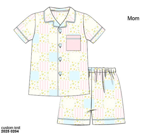 RTS: Polly Patchwork- Mom/Mini 2pc Satin Lounge Set