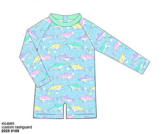 RTS: Nostalgic Sharks- Boys 1pc Rash Guard Swim (Without Monogram)