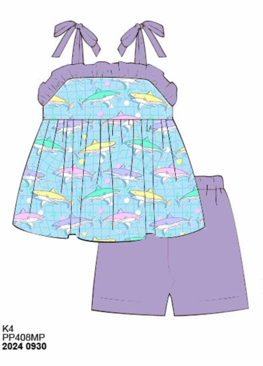 RTS: Nostalgic Sharks- Girls Knit Biker Short Set