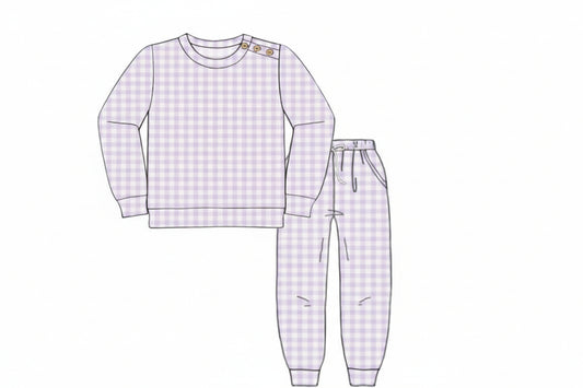 RTS: Comfy Cozy Joggers- Lavender Check Sweater Jogger Set