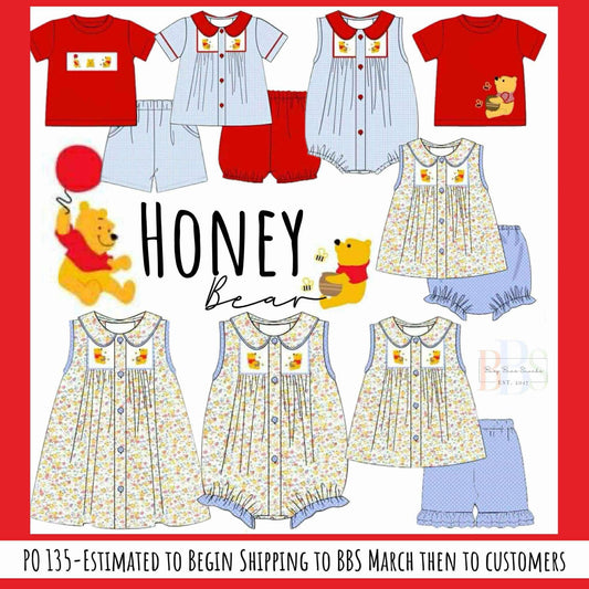 Pre Order 135: Honey Bear- Boys Smocked Bubble Short Set