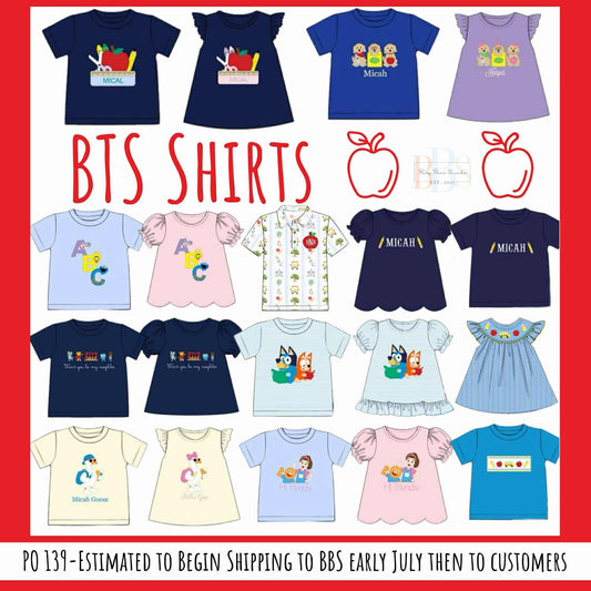 Pre Order 139: BTS Shirt Only- Girls Smocked School Days Woven Shirt