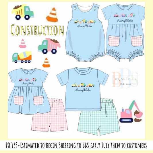 Pre Order 139: French Knot Construction- Girls Knit Biker Short Set