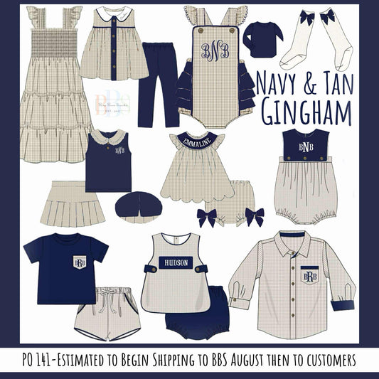 Pre Order 141: Navy & Tan Gingham- Boys Woven Bubble