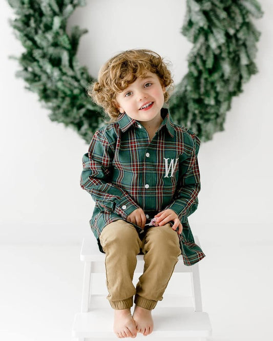 RTS: Christmas Lounge- Wreath Dad/Mini 2pc Button Up Set (No Monogram)