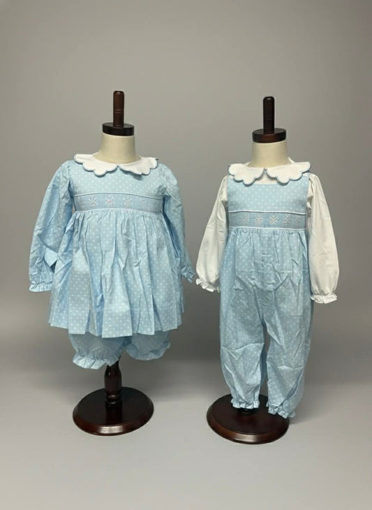 RTS: Let it Snow- Girls Woven 2pc Romper