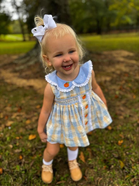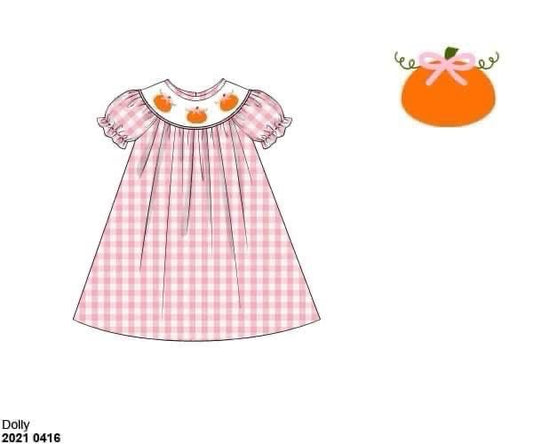 RTS: Gingham Pumpkins- Girls/Doll Woven Dress