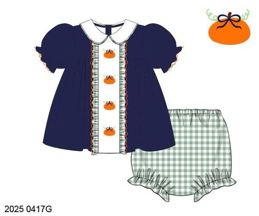 RTS: Navy & Seersucker Check Pumpkins- Girls Bloomer Set
