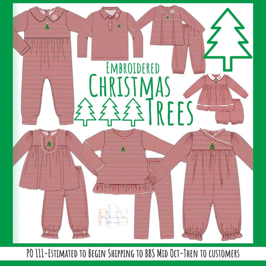 RTS: Embroidered Christmas Tree- Girls Knit Bubble Short Set