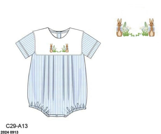 RTS: Bunny Crest- Boys Woven Bubble (No Monogram)