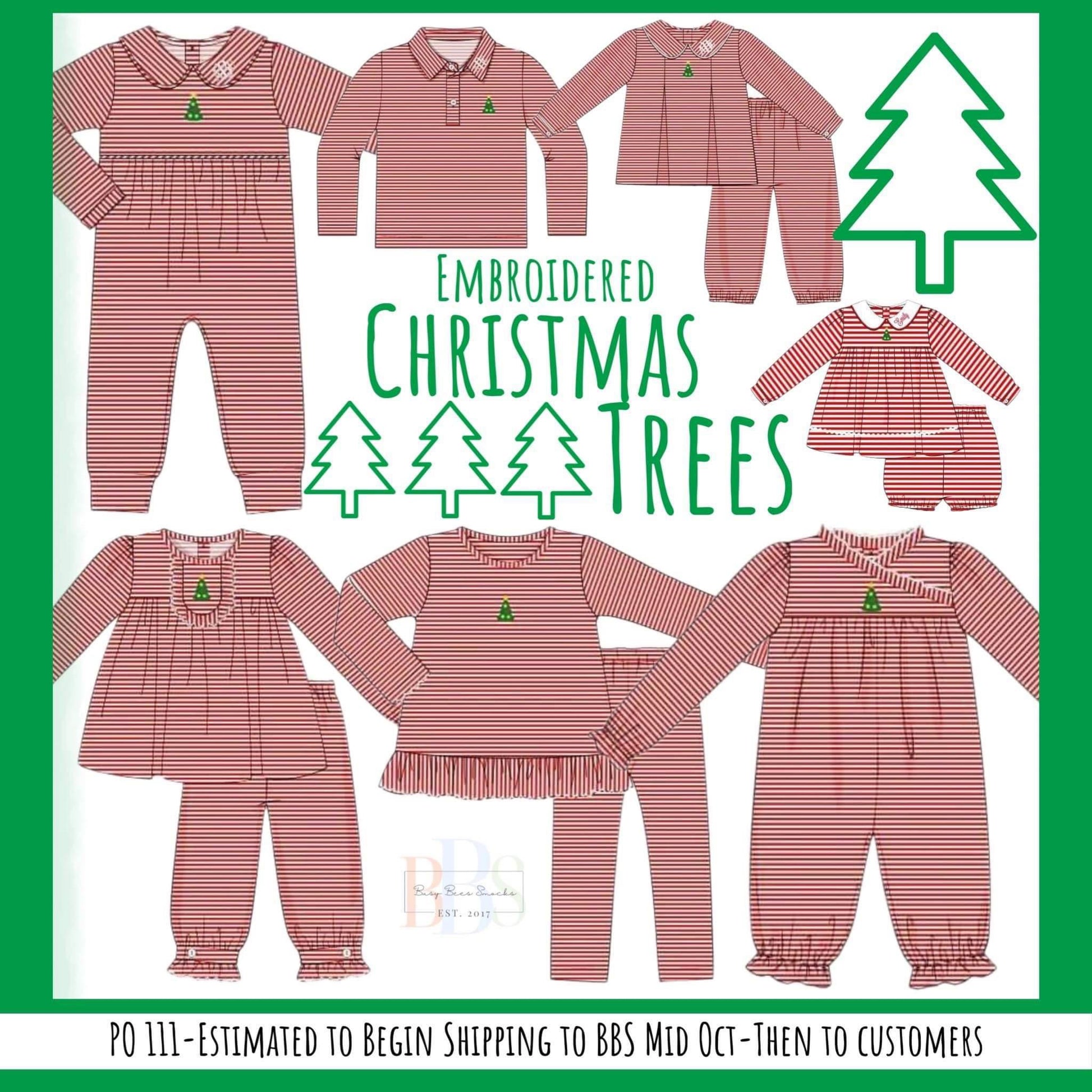 RTS: Embroidered Christmas Tree- Girls Knit Bubble Pant Set
