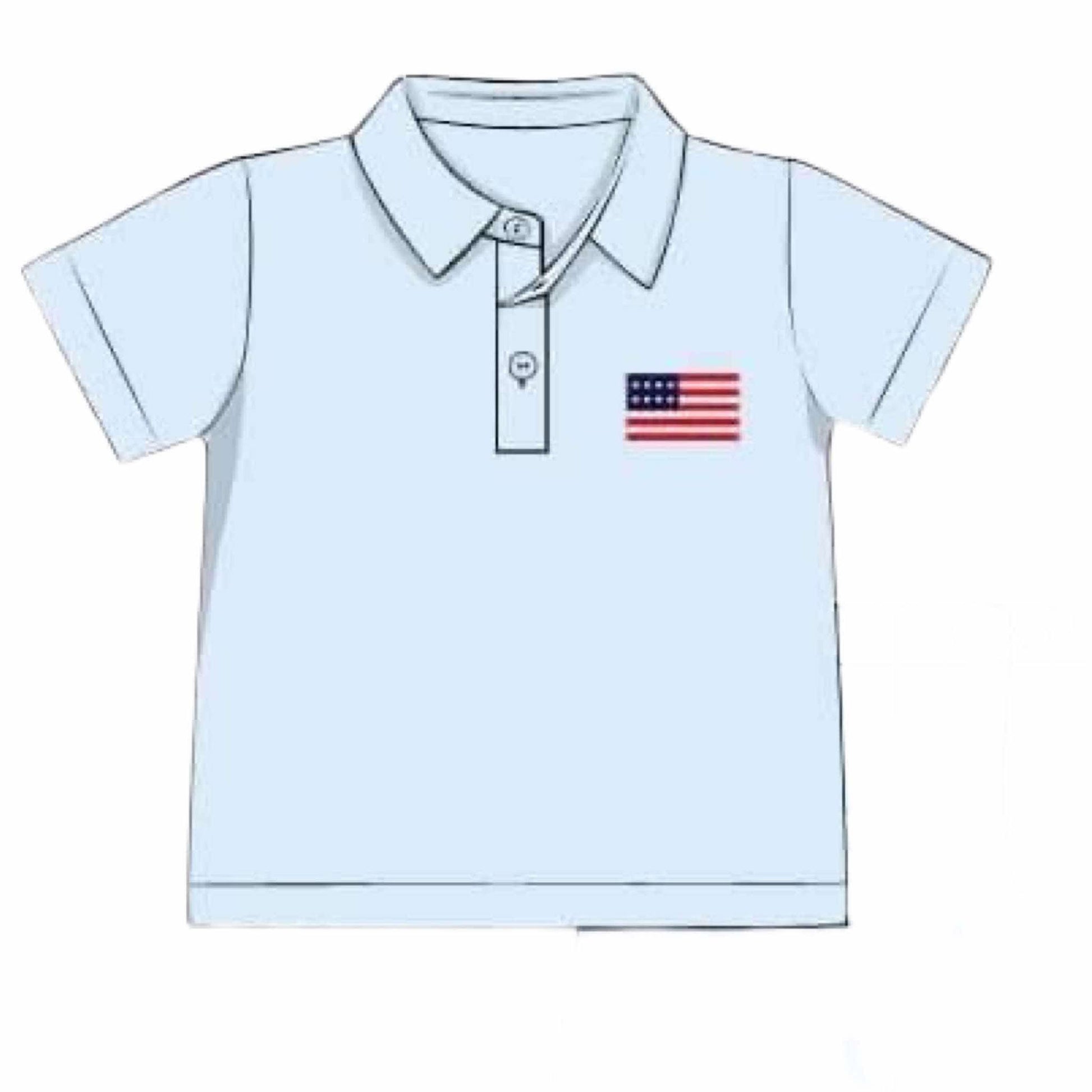 RTS: Light Blue Gingham Flags & Bows- Embroidered Polo