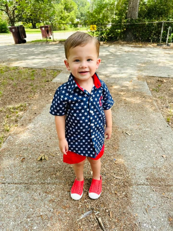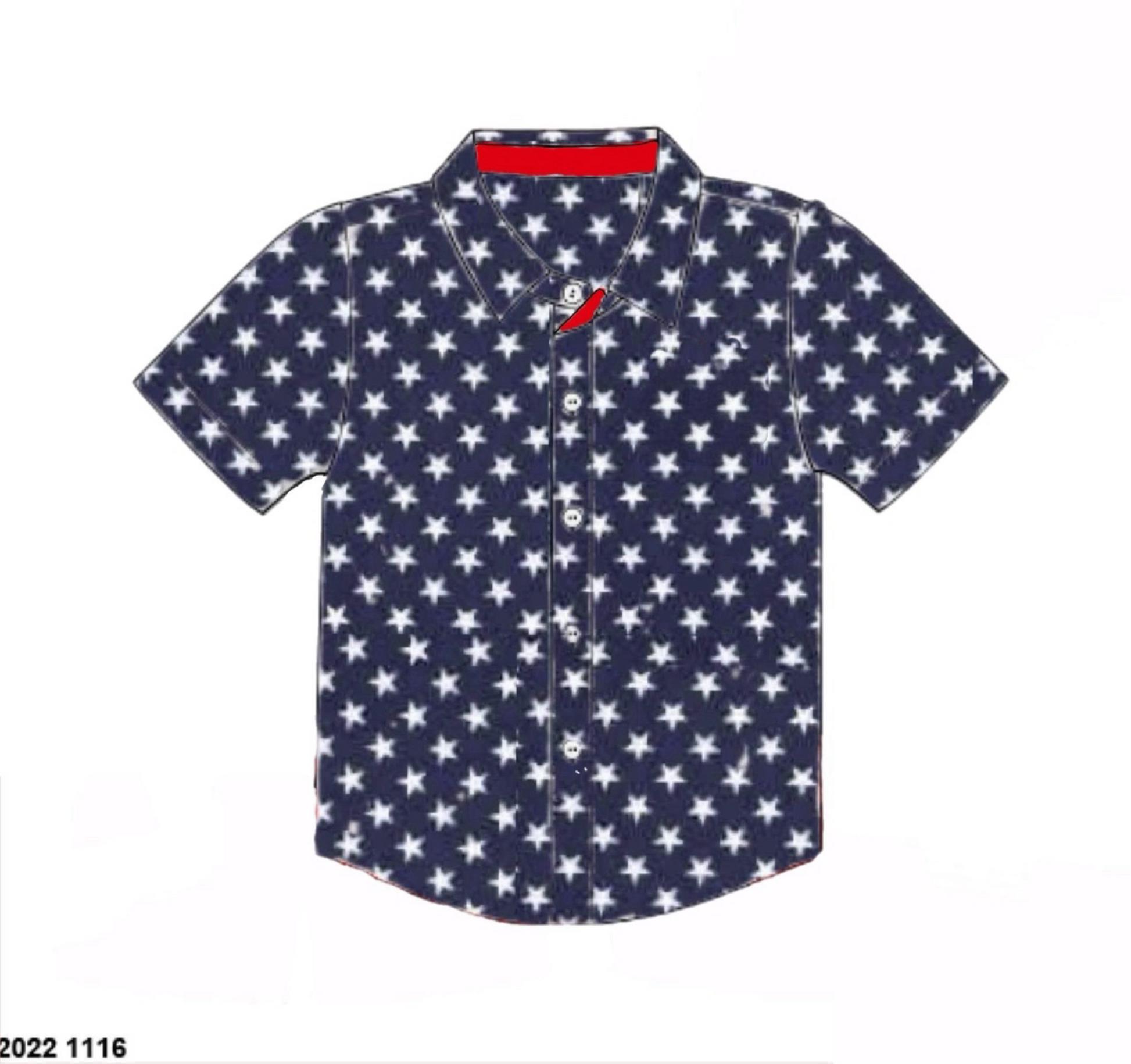 RTS: Navy Stars- Dad/Boys Woven Button Up Shirt