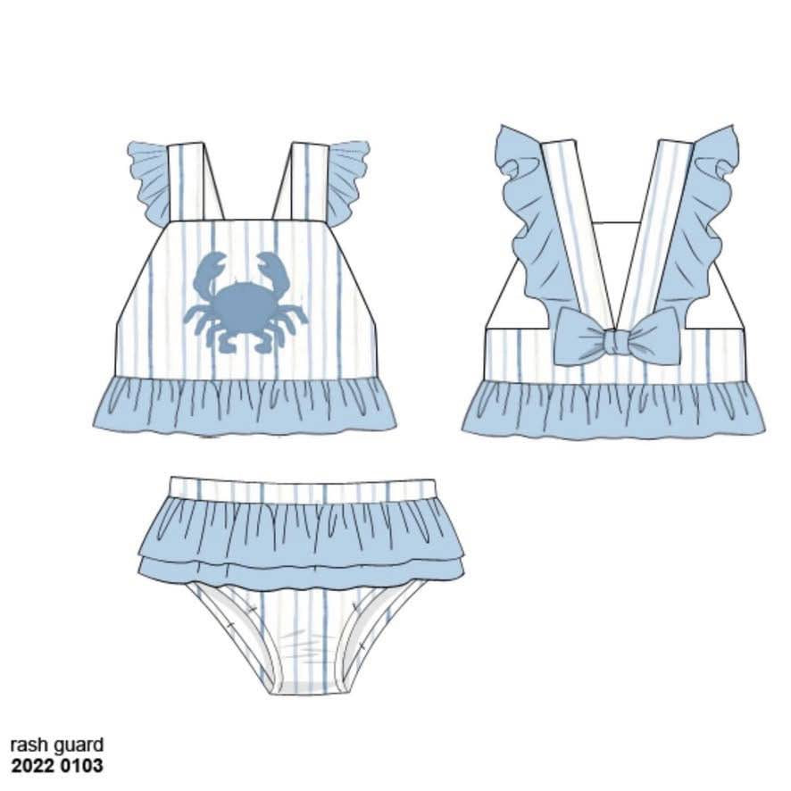 RTS: Blue Crabs & Fish- Girls 2pc Rash Guard Swim