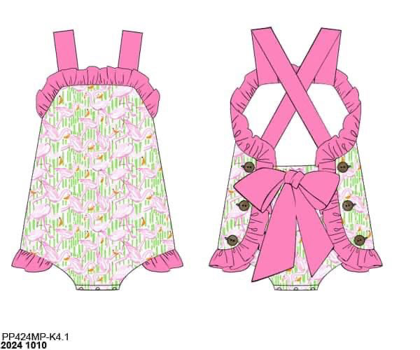 RTS: Flamingo Tropics- Girls Knit Sunsuit