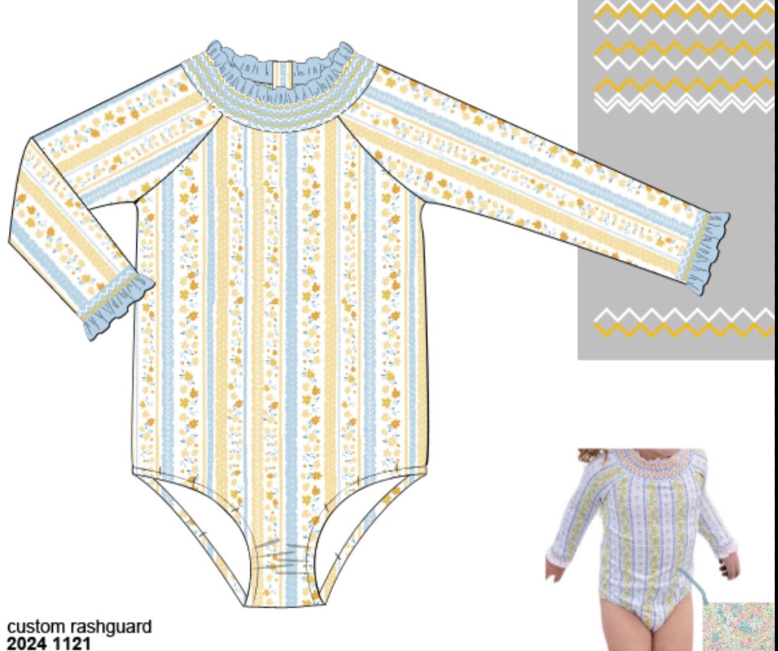 Item details: 1pc long sleeve rash guard swim; smocked design, no monogram