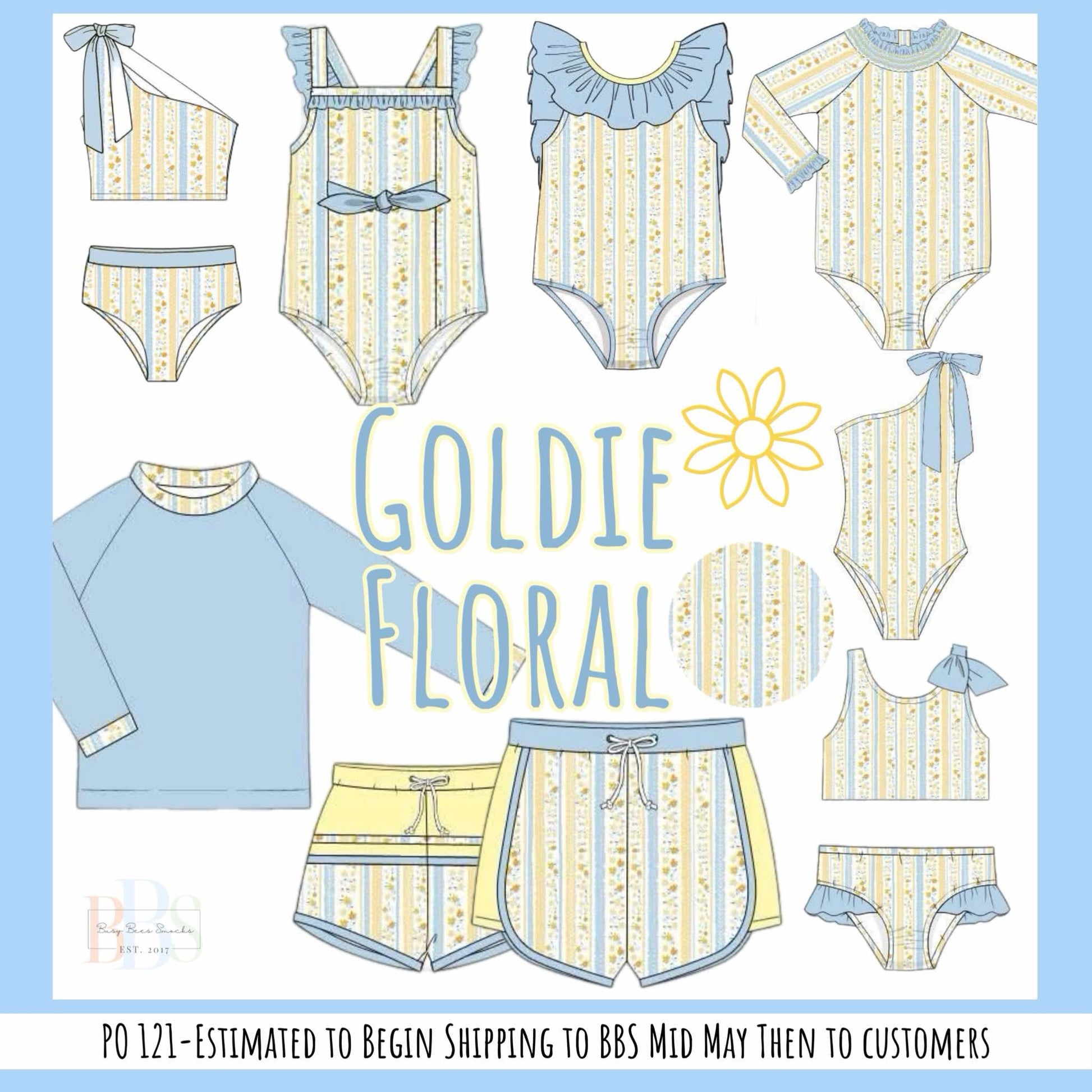 RTS: Goldie Floral- Girls Floral 1pc Yellow Bow Swimsuit
