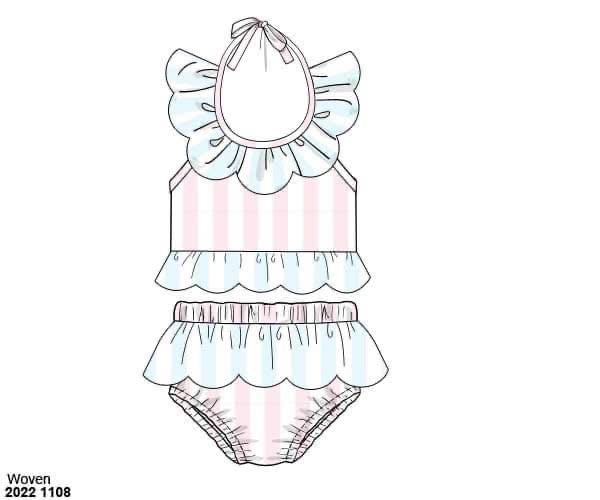 RTS: Pastel Stripes- Girls 2pc Woven Swim