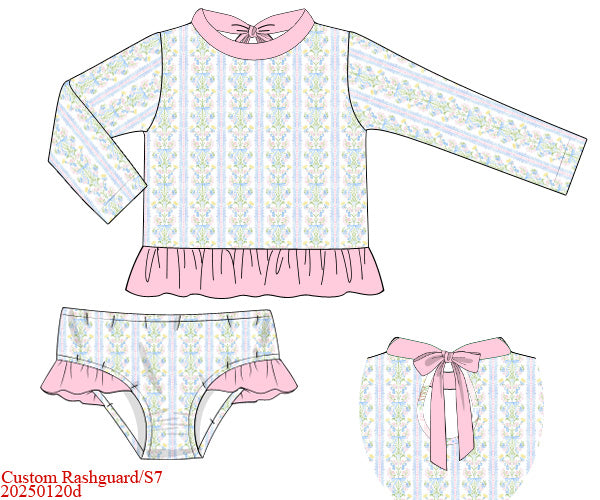 RTS: Matilda Floral & Plaid- Girls 2pc Rash Guard Swim