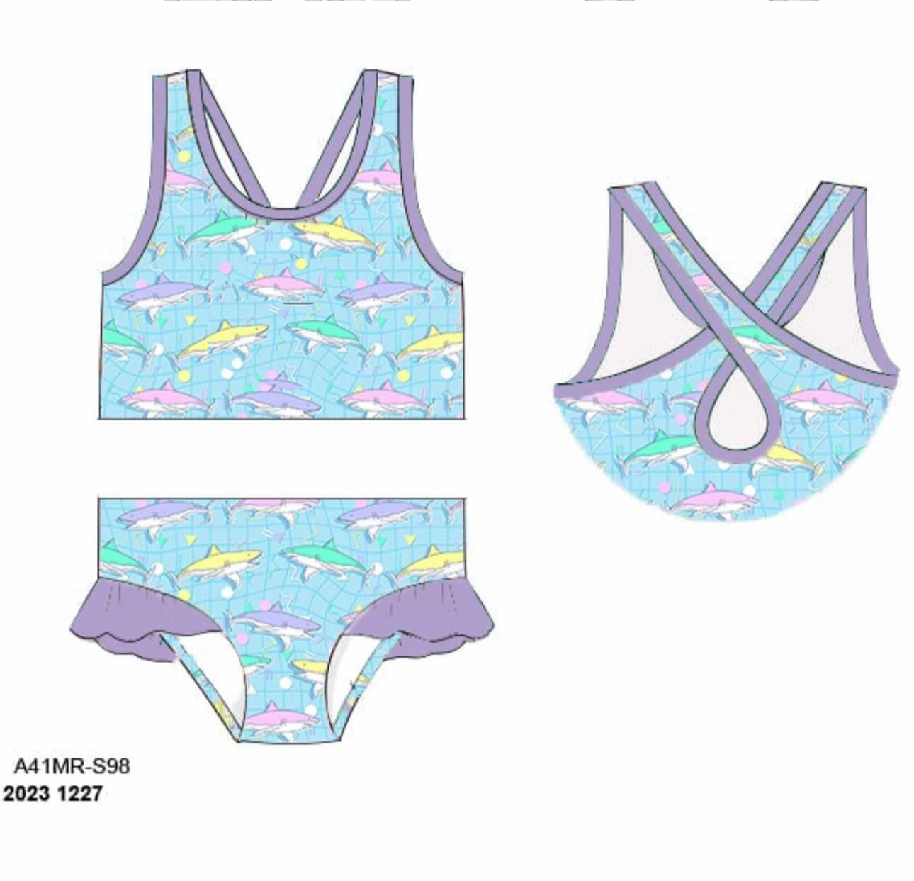 RTS: Nostalgic Sharks- Girls 2pc Rash Guard Swim