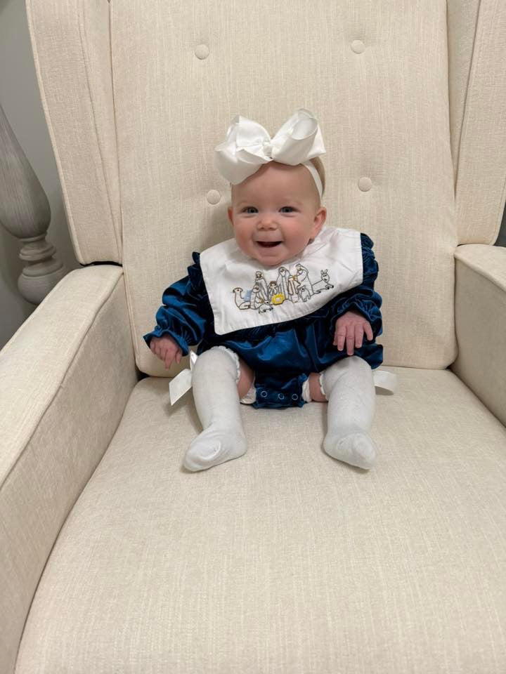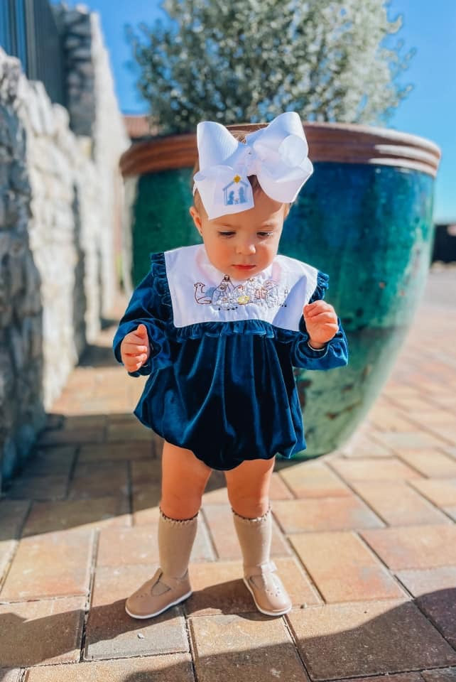 RTS: Blue Velvet Nativity- Girls Embroidered Bubble