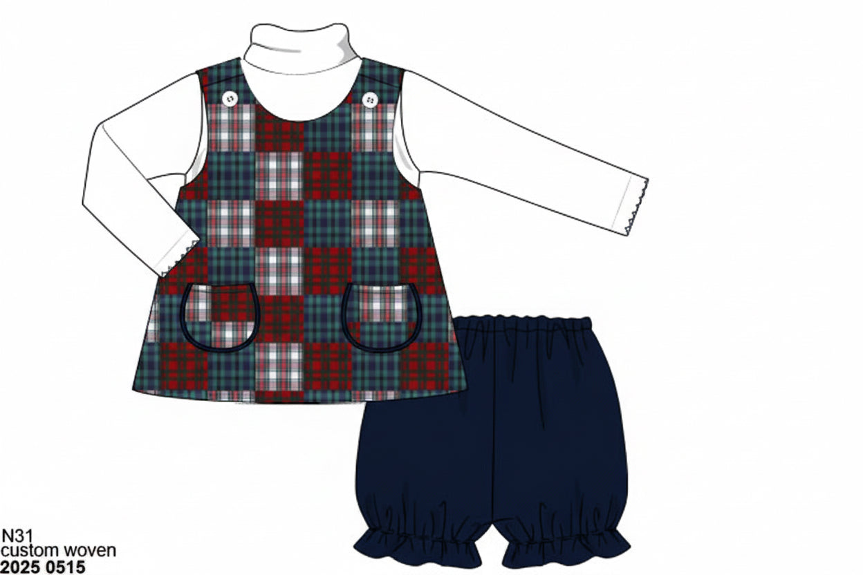 RTS: Christmas Madras- Girls 3pc Bubble Short Set