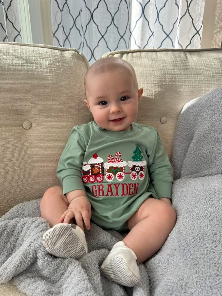 RTS: Gingerbread Train- Boys Knit Bubble (No Monogram)