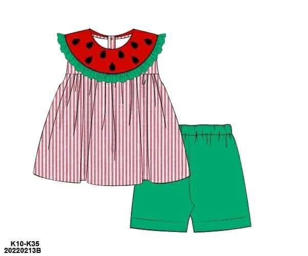 Pre Order 136: Slice of Summer- Girls Seersucker Biker Short Set