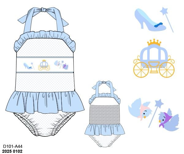 Pre Order 135: Glass Slipper- Girls Rashguard 1pc Smocked Swim