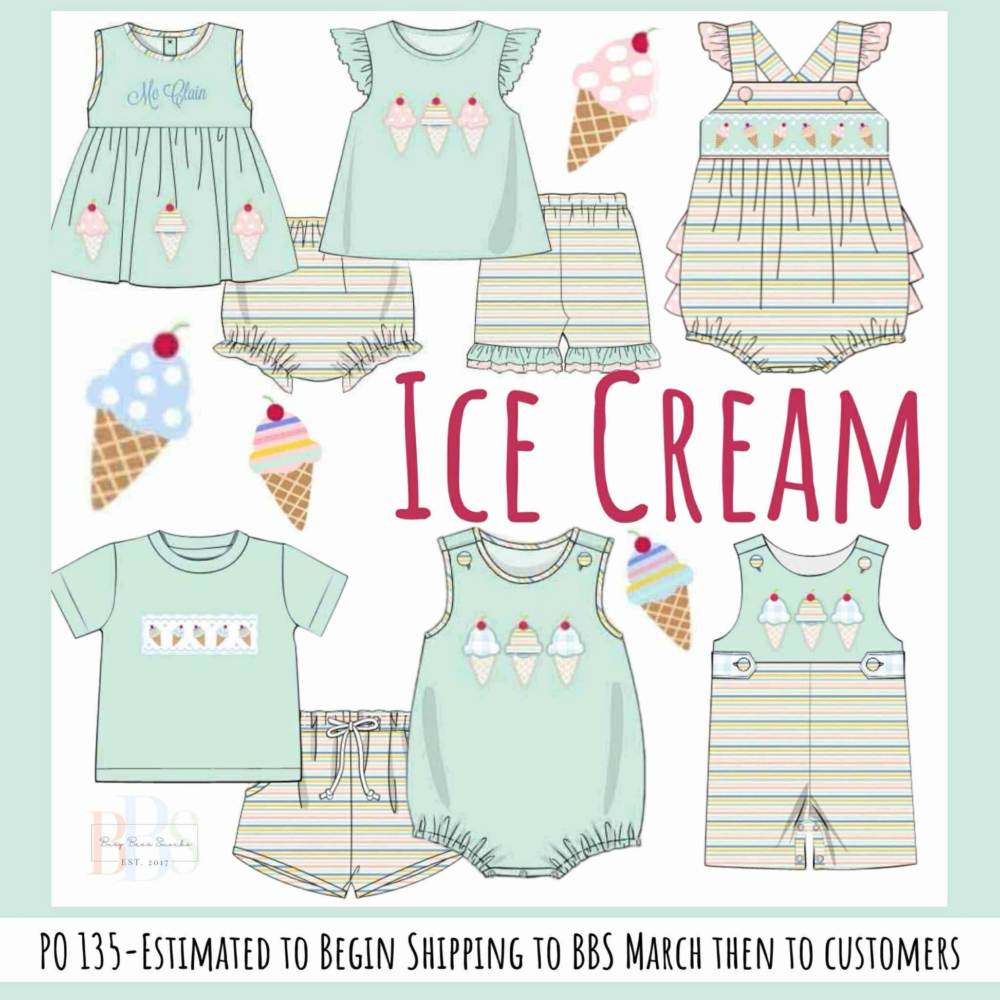 Pre Order 135: Ice Cream- Girls Knit Smocked Bubble