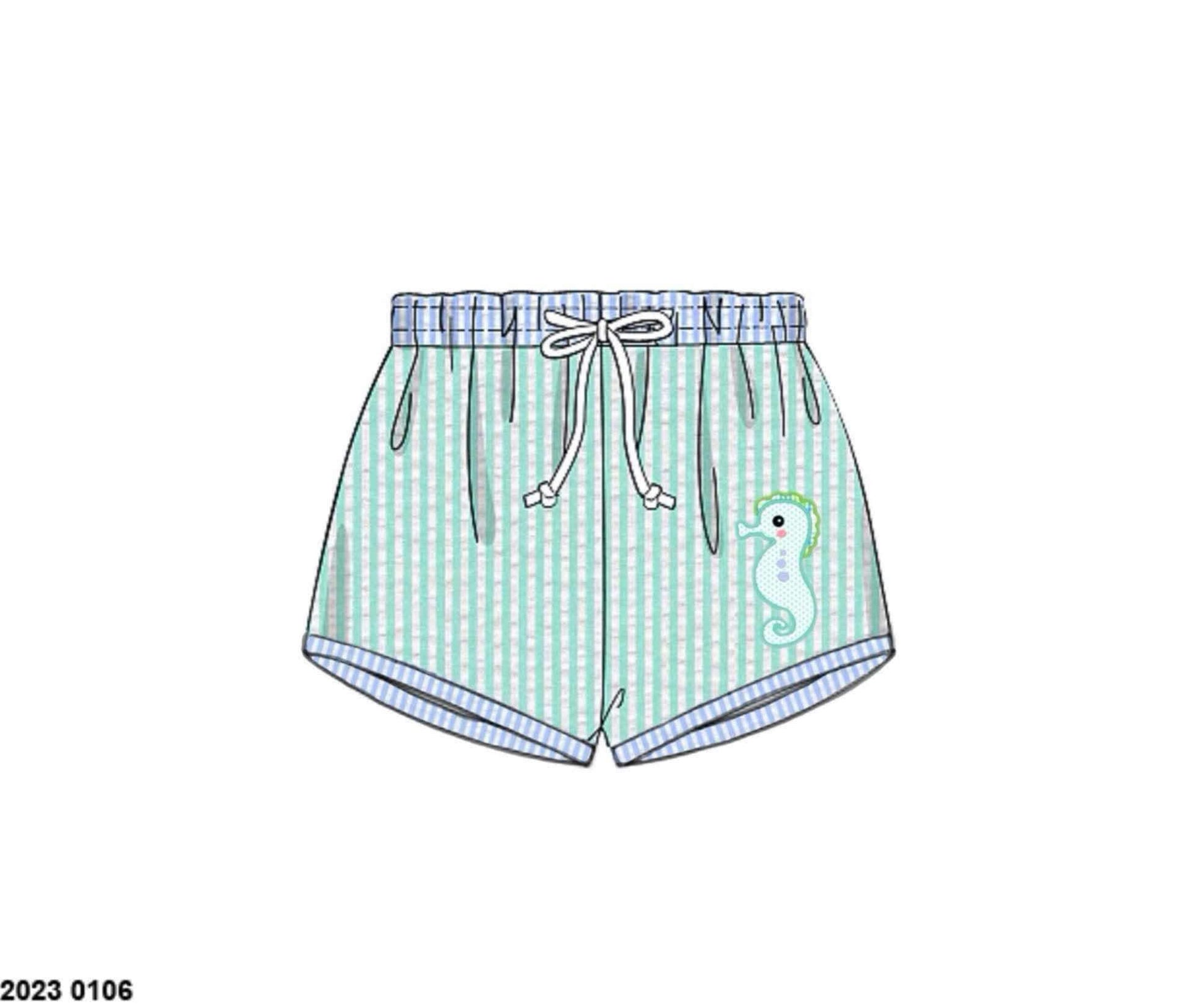 Pre Order 135: OG Seahorse- Boys Woven Applique Swim Shorties