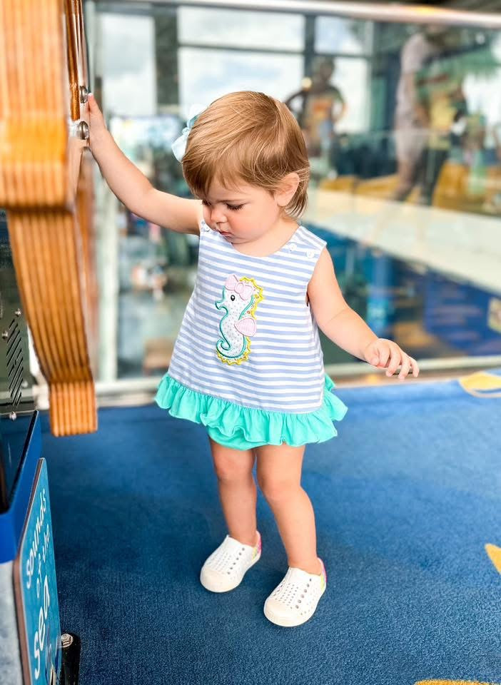 Pre Order 135: OG Seahorse- Girls Applique Bloomer Set