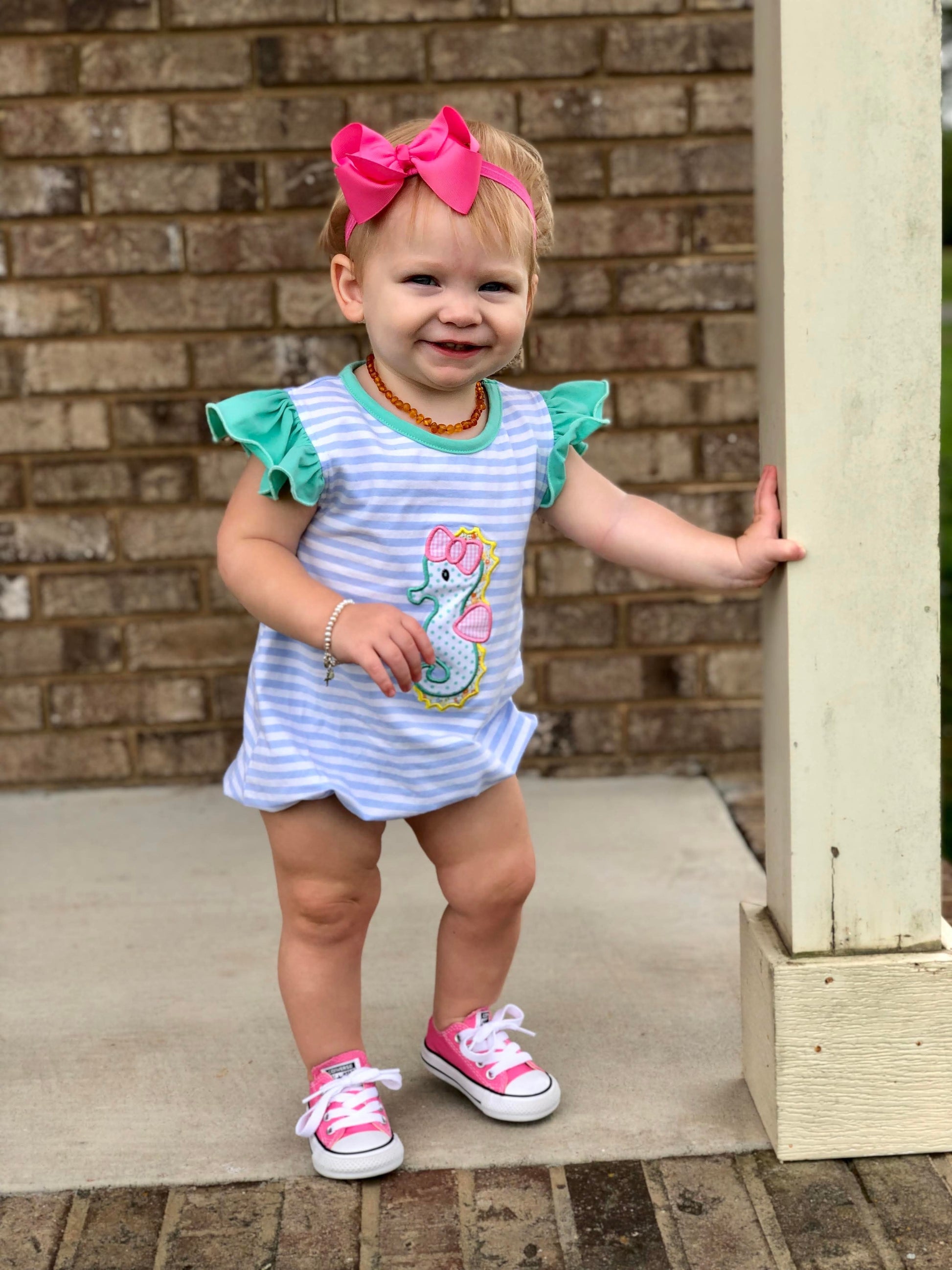 Pre Order 135: OG Seahorse- Girls Applique Bubble