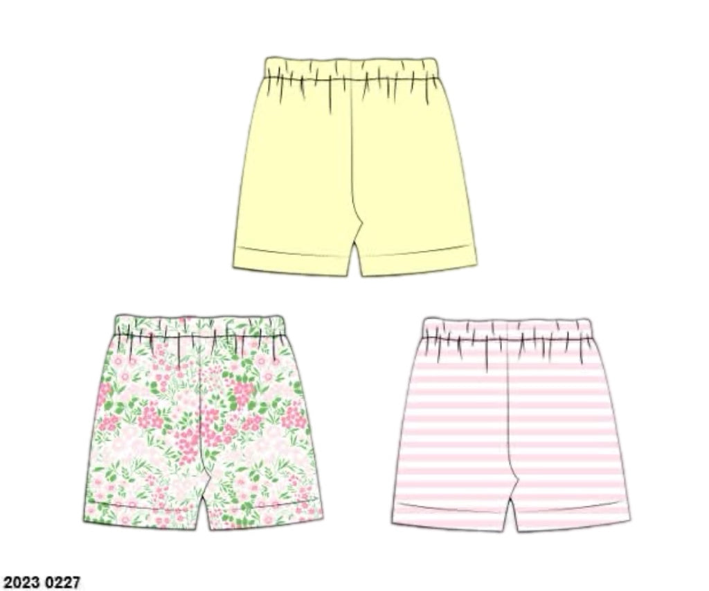 Pre Order 136: 3pc Bottom Packs- Girls Pale Yellow, Floral, and Pink Stripe Biker Shorts