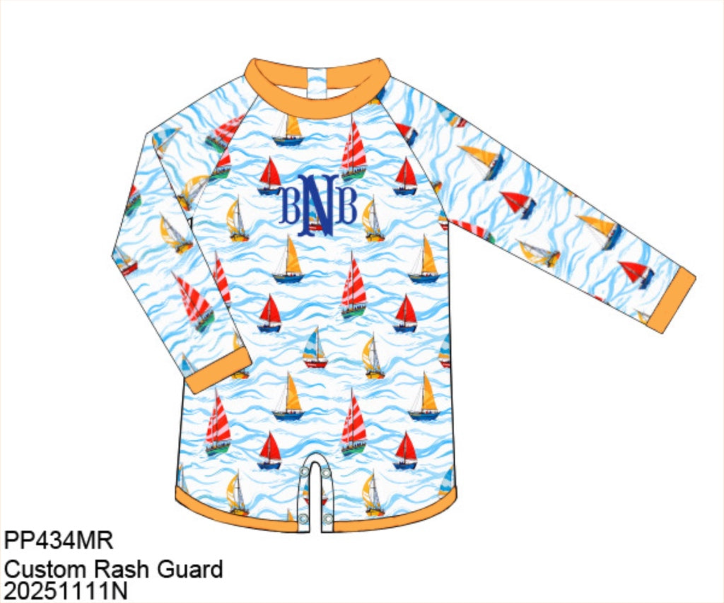 - Item details: Rashguard 1pc swim with optional monogram.