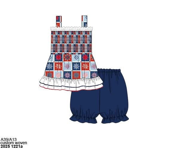 Pre Order 137: Patriotic Patchwork- Girls Knit Bubble Short Set