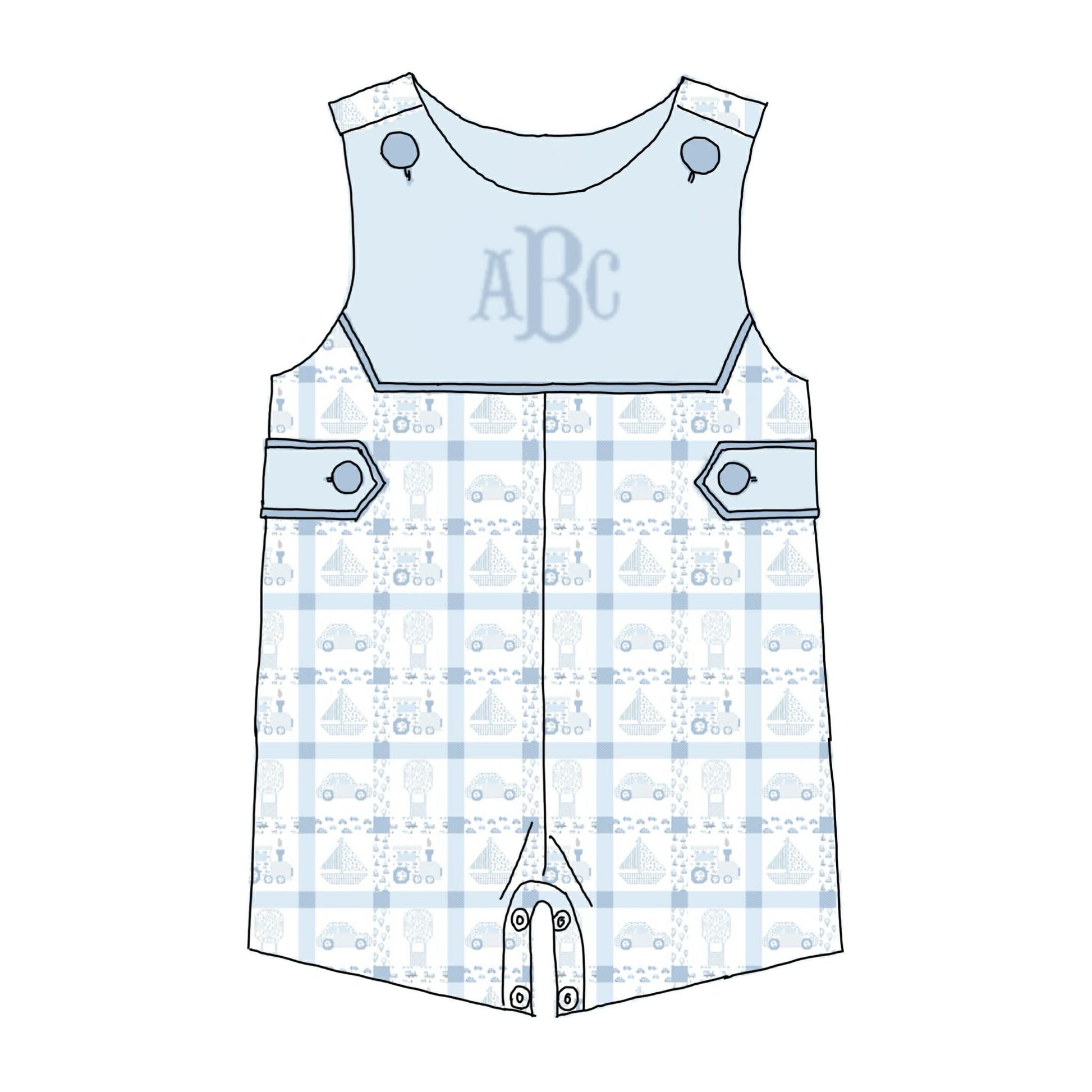 - Item details: Knit shortall; optional monogram.