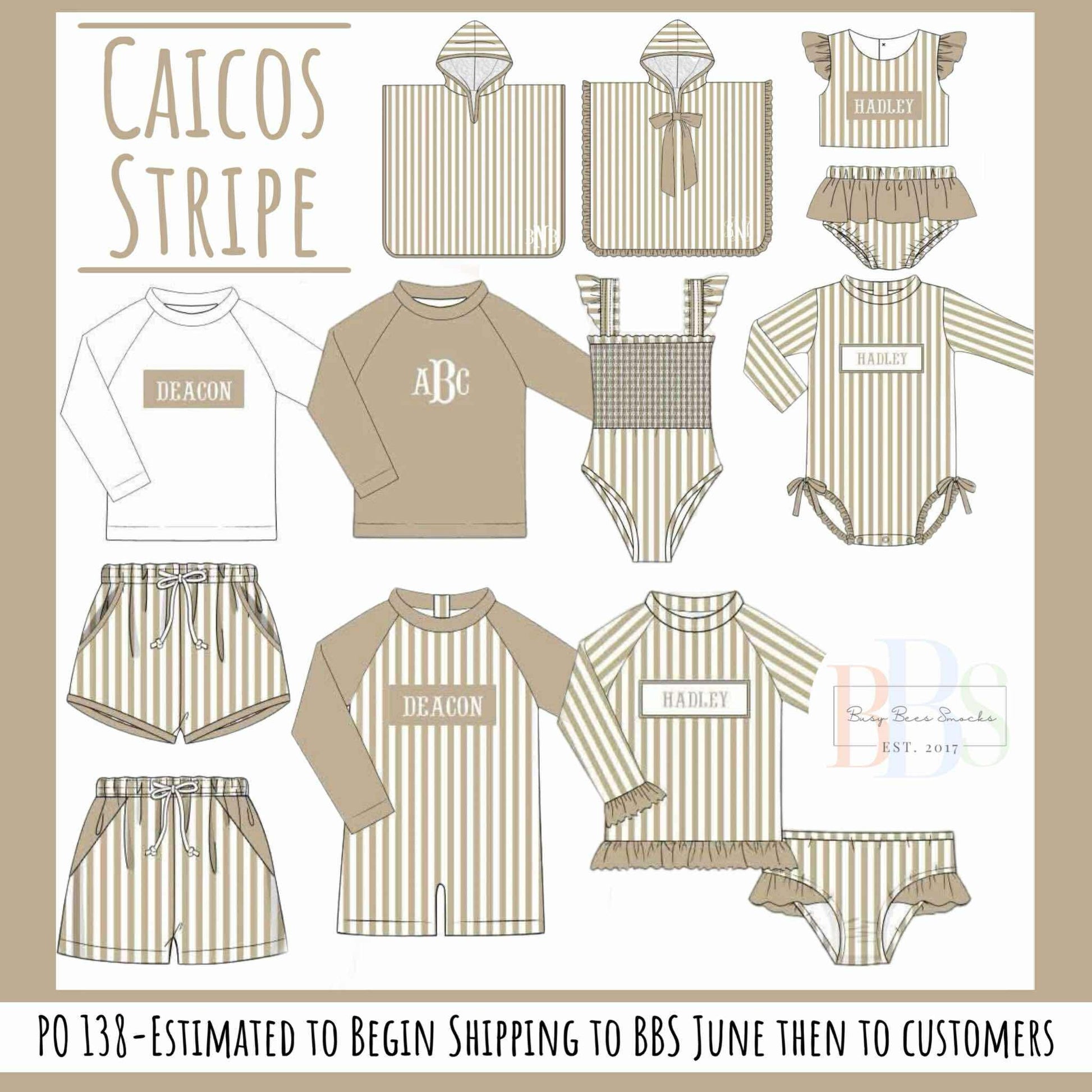 Pre Order 138: Caicos Stripe- Girls Name Smock Woven Flutter Sleeve 2pc Swim