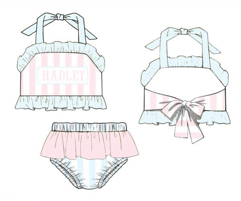 Pre Order 138: Pastel Stripe- Girls Name Smock 2pc Swim