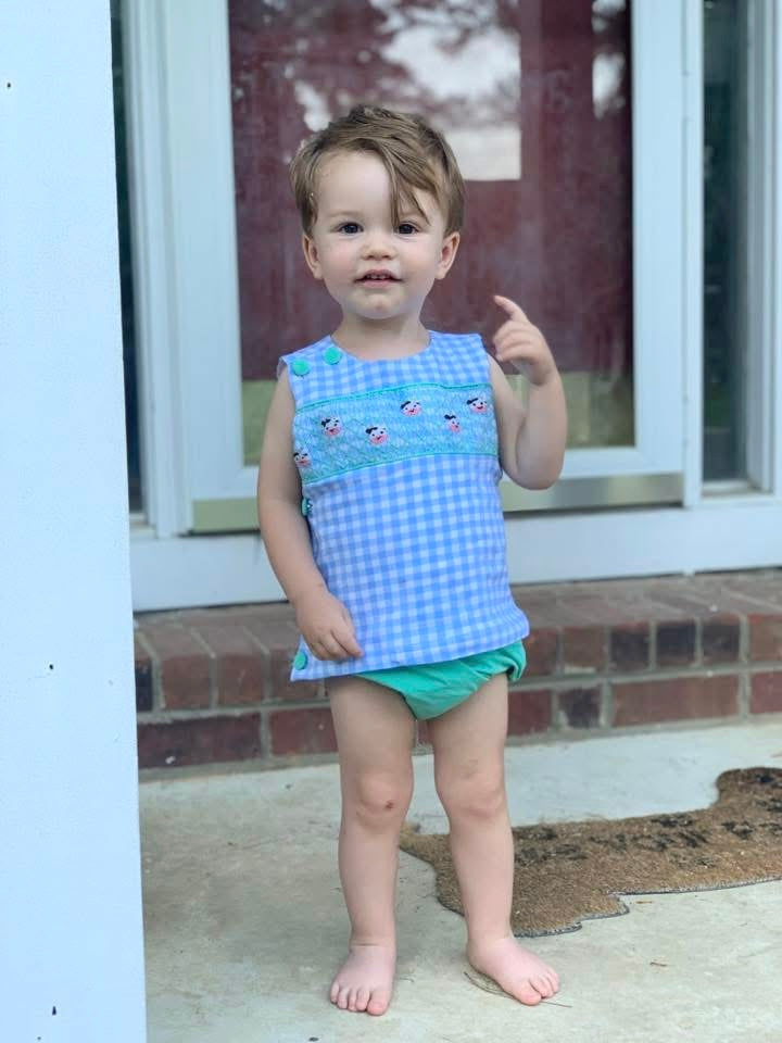 Pre Order 139: Geo Smocked Cows- Boys Diaper Set
