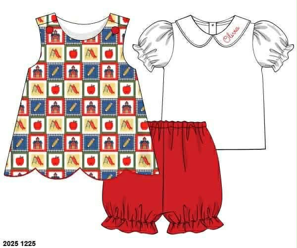 Pre Order 139: Schoolhouse Patchwork- Girls Woven Bubble Short Set
