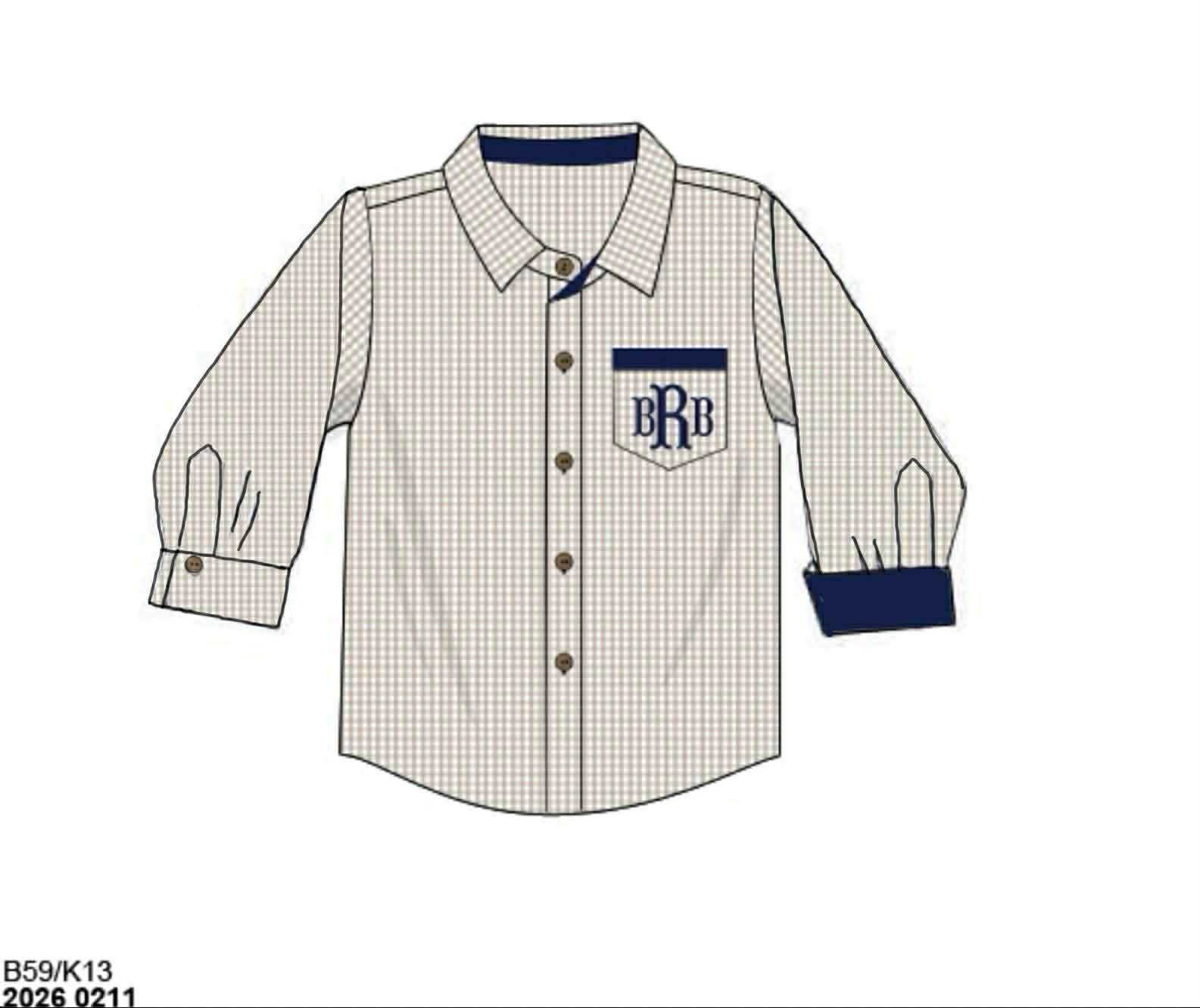 Pre Order 141: Navy & Tan Gingham- Boys Woven Button Up Shirt