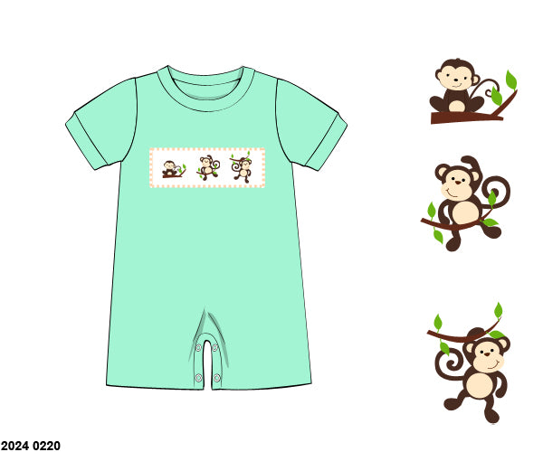 RTS: DEFECT- B-A-N-A-N-A-S- Boys Knit Smocked Romper