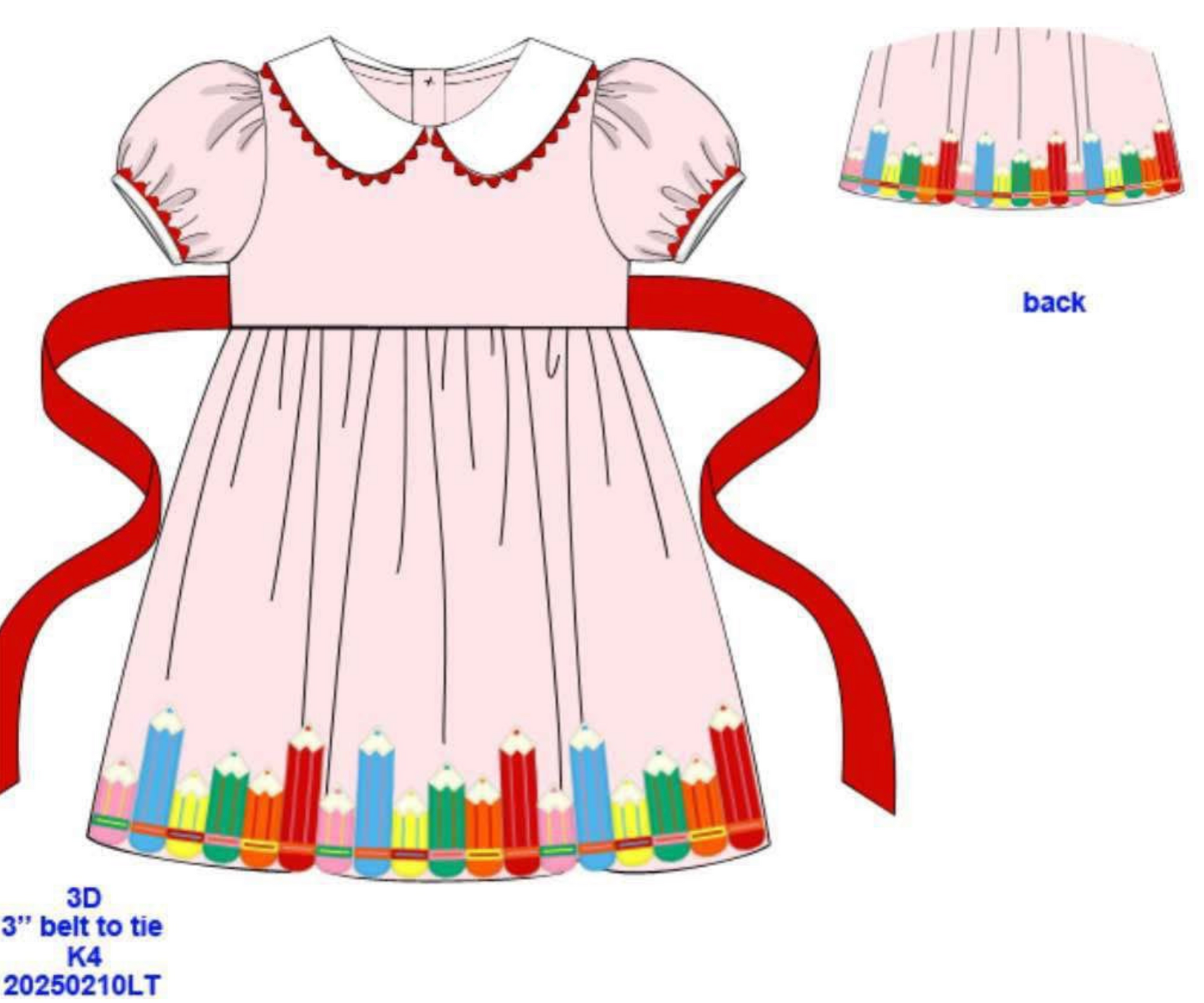 RTS: DEFECT- Colored Pencils- Girls Woven Dress