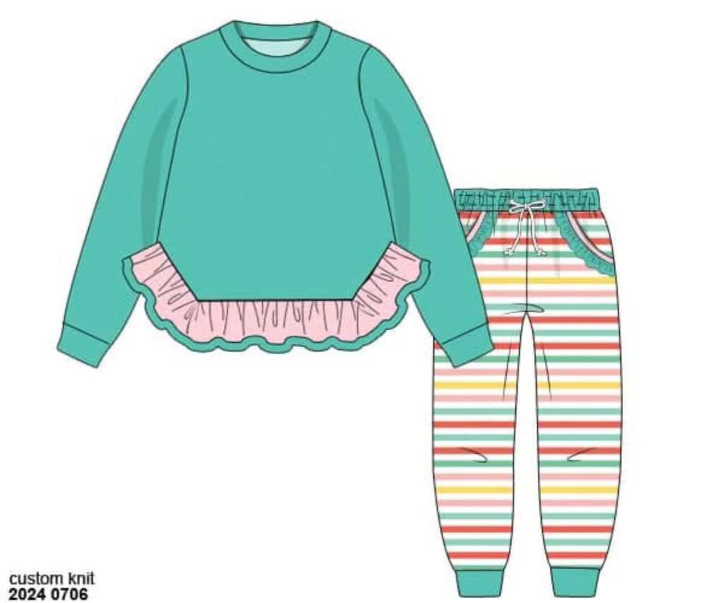 RTS: DEFECT- Knit Joggers- Girls Knit Candy Stripe Set